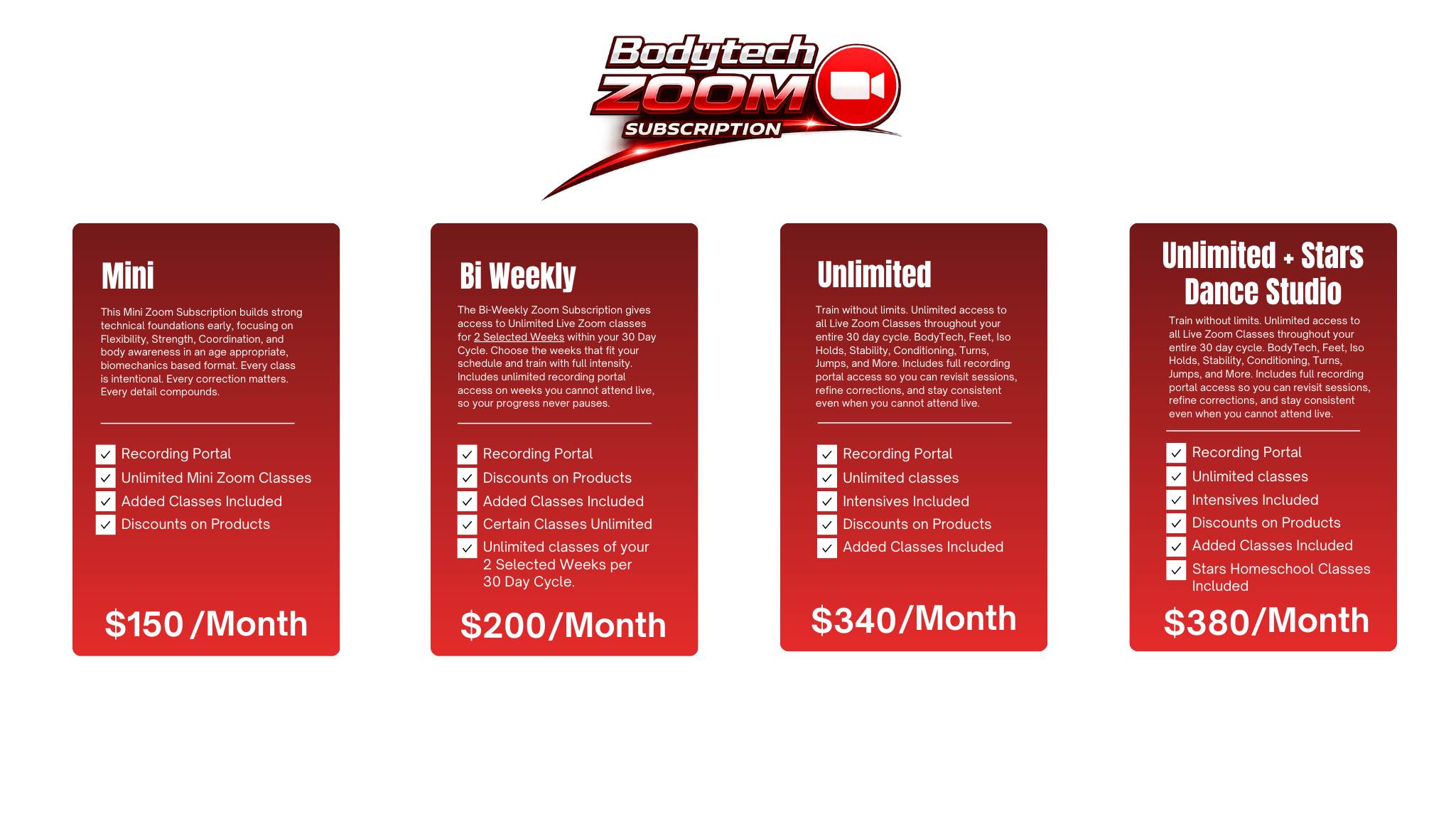 • Access to scheduled Zoom classes based on your selected plan
